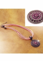 Originálny šperk vo vysokokvalitnom prevedení! Nádherný prívesok je vykladaný 40 ligotavými štrasovými kameňmi, je navlečený na viacvrstvovú textilnú šnúrku, s praktickým zapínaním. Prívesok má priemer 4,4 cm, šnúrka je dlhá 44 cm + 4,5 cm predĺženie na zapínanie.