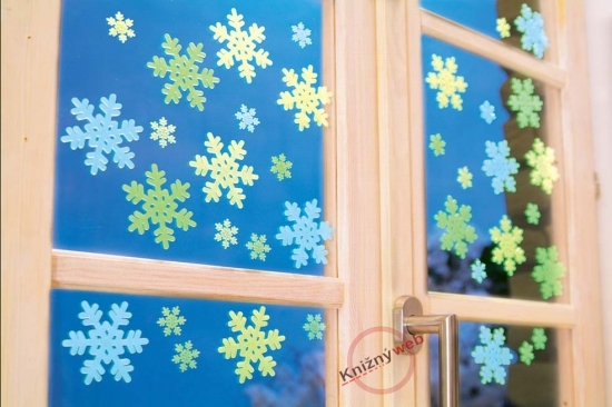 Trendová dekorácia! Vločky v noci svietia, sú v troch farbách - zelená, žltá, modrá. Vločky môžete nalepiť na darčeky, na stenu, okno...