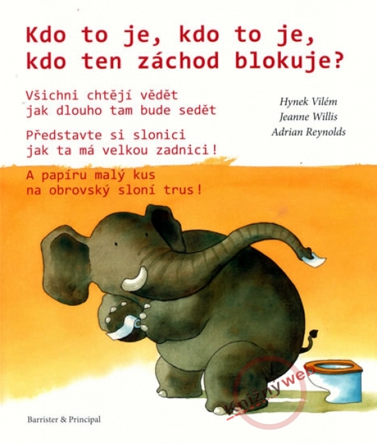 Kdo to je, kdo to je kdo ten záchod blokuje ? Všichni chtějí vědět jak dlouho tam bude sedět Představte si slonici jak ta má velkou zadnici ! A papíru malý kus na obrovský sloní trus !