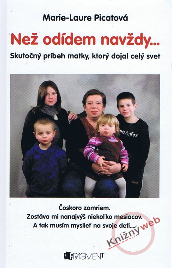 Boj osamelej matky zoči-voči neodvratne blížiacej sa smrti vychádza z neochvejného rozhodnutia včas nájsť rodinu, ktorá prijme jej štyri deti a postará sa o ne. Sila jej osobnosti i príbehu dojala čitateľov na celom svete. Teraz jej príbeh prichádza na Slovensko. Ako prežiť posledné dni života a jeho koniec? Čo robiť, keď ešte nemáte ani štyridsať rokov a ste matkou početnej rodiny? Jeseň 2008. Marie-Laure Picatová zisťuje nekompromisnú diagnózu – rakovina v poslednom klinickom štádiu. Ostáva jej len vymedzený čas života. Jej prvá myšlienka okamžite patrí deťom: Čo s nimi bude, keď zomrie? Nie, teraz sa nemôže zosypať! Marie-Laure musí hrať svoju životnú rolu matky až do konca, a preto sa rozhodne sama nájsť rodinu, ktorá sa bude starať o jej deti... Hneď na začiatku sa Picatová dozvedá krutú realitu: Osud jej detí nezávisí od nej! Rozhodne pridelený sudca, a to dokonca až po jej smrti. A nikto nezaručí, že Julie, Thibault, Matthieu a Margot budú naďalej vyrastať spoločne... .