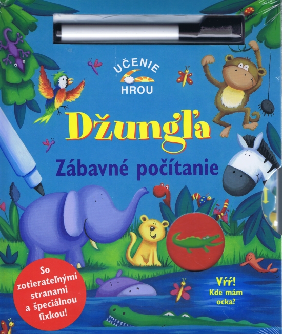 Učenie hrou. Vpredu je otočné koliesko s kopou zvieracích kamarátov a strany knižky sa dajú otvárať aj ďalej. Na každej strane sa naučíte niečo nové a zoznámite sa so životom v džungli. Stránky sa dajú zotierať, takže písať na ne možno znovu a znovu.