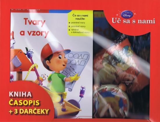 Kufrík obsahuje knihu Uč sa s nami - Tvary a vzory, časopis a 3 darčeky.