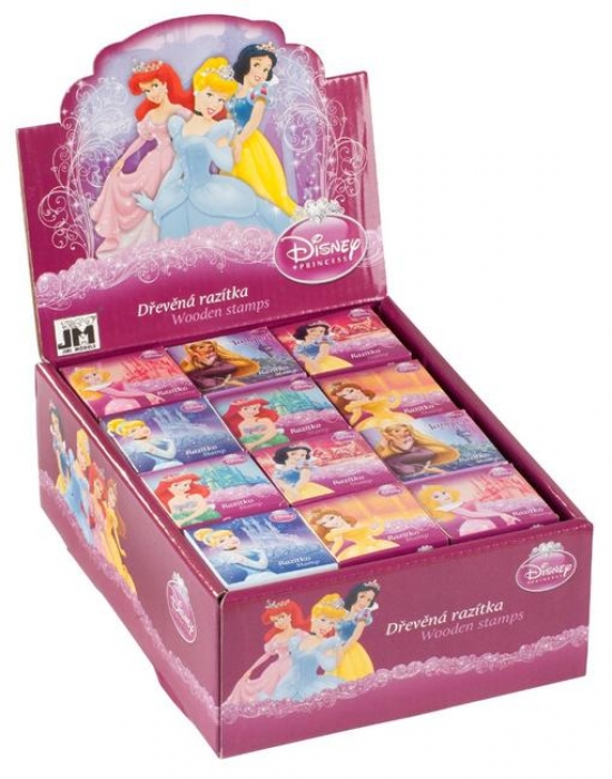 Dřevěné solo razítko s motivy Disney princezen, balená jednotlivě v barevné krabičce.