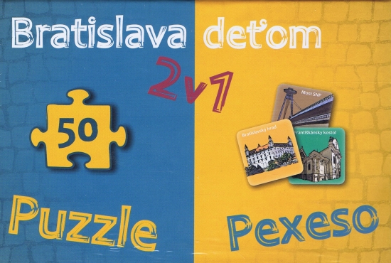 Exkluzívne kartónové pexeso s pamiatkami Bratislavy v poťahovanej krabičke a puzzle s charakteristickým obrazom Bratislavy pozostávajúcim z 50 častí predstaví hravou formou hlavné mesto Slovenska a deti získajú povedomie o jeho kultúrnych pamiatkach a zaujímavostiach.