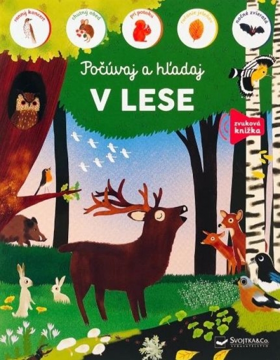 Zvuková kniha so zvukmi zvierat z lesa. Deti sa zoznámia so zvieratami, vypočujú si zvuky a budú ich hľadať na každej stránke.